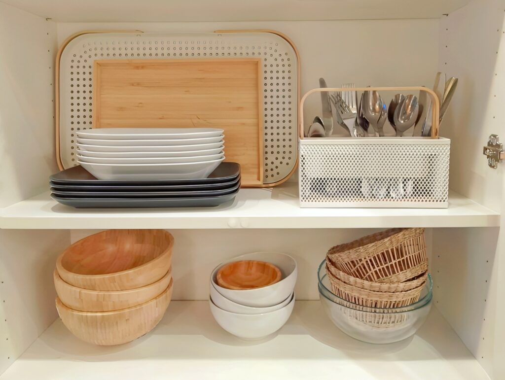 必要なものだけになったら、それらを収納していきます。ポイントは、それぞれのモノの「定位置」を決めることです。よく使うもの(お玉やフライ返しなど)はコンロ周り、食器は食事をする場所の近くなど、動作をイメージしながら、取り出しやすく、そして「戻しやすい」場所を決めましょう。カトラリーや小物は仕切りを使って整理すると、さらにスッキリします。使った物をすぐに元の場所に戻す習慣がつけば、リバウンドを防ぎ、常に整理されたミニマリストなキッチンを保つことができます。