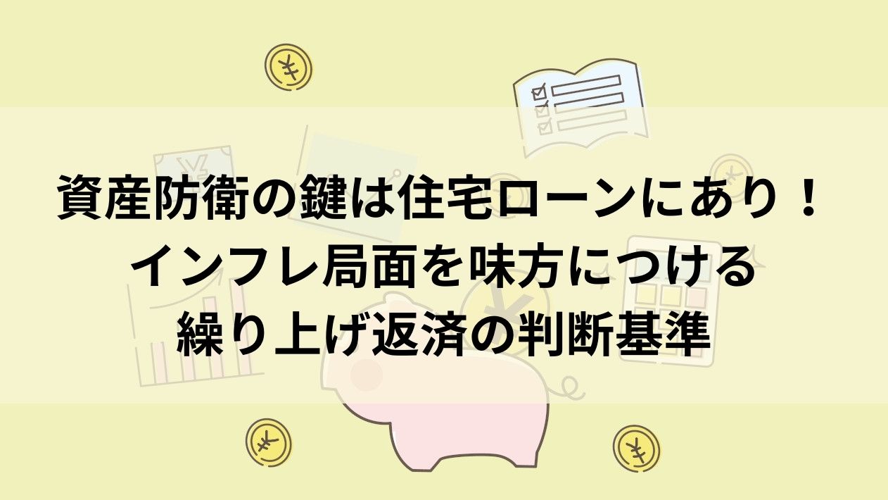 資産防衛の鍵は住宅ローンにありというテーマのもと、インフレ局面を味方につける繰り上げ返済の判断基準について詳しくお話ししてきました。私たちが直面している物価上昇の波は、日々の生活コストを押し上げる厄介な存在であると同時に、抱えている借金の実質的な負担を軽くしてくれるという意外な側面を持っています。名目金利(めいもくきんり)だけでなく実質金利という視点を持ち、お金の価値が下がることで起こる借金の目減り効果を理解することが、これからの時代を生き抜く第一歩です。固定金利・変動金利のどちらを選んでいるかによってリスクの大きさは異なりますが、同時に不動産というインフレに強い資産価値を保有していることの強みを忘れてはなりません。手元に資金ができたからといって安易にローン残高を減らすのではなく、物価上昇リスクに備えるための生活防衛資金を確保し、余裕があれば投資余力として運用に回すといった柔軟な姿勢が求められます。借金は早く返すものという過去の常識にとらわれず、経済の大きな流れをしっかりと読み解きながら、ご自身の大切な資産を守り、そして育てていくための賢い選択をしていきましょう。